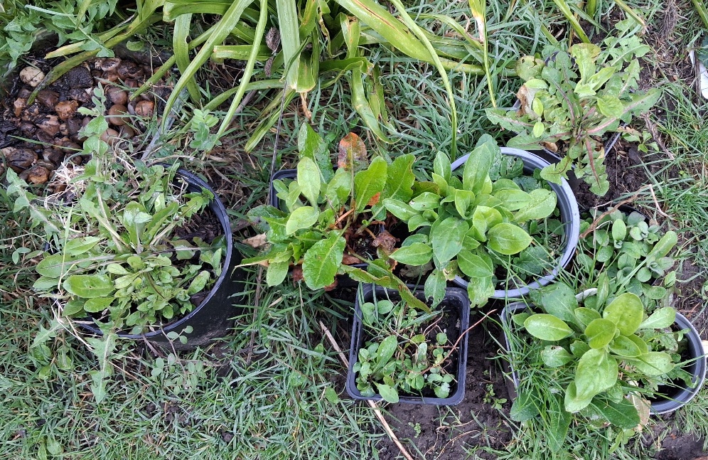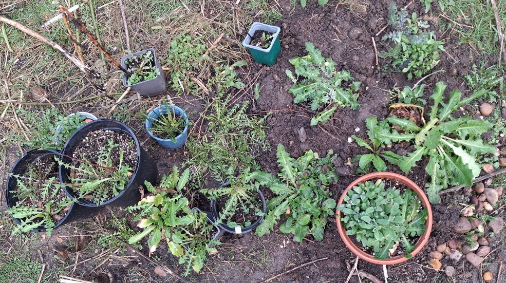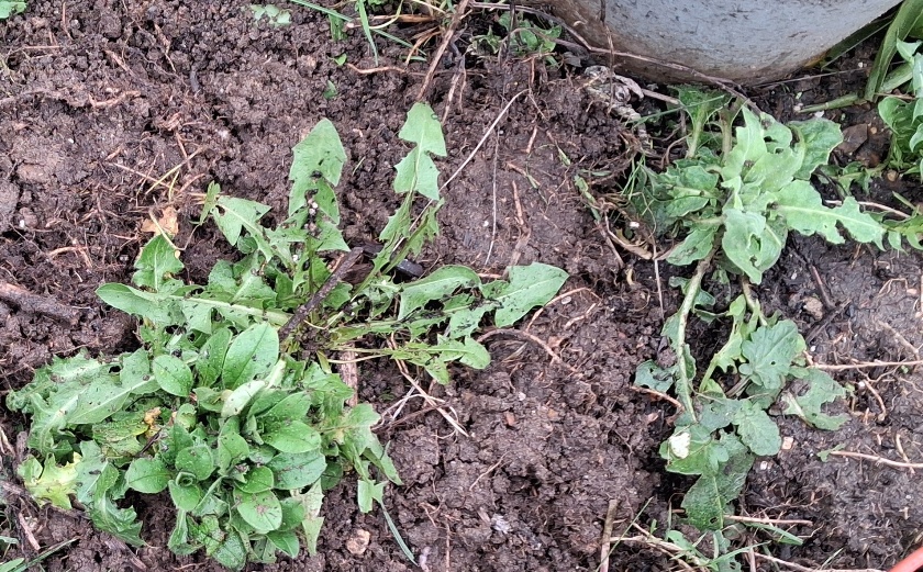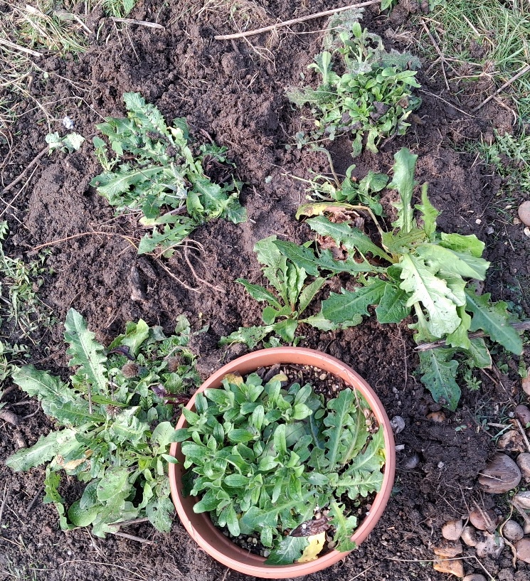 Last year I had a lot of self-seeded plants in my new garden, especially dandelions and beaked hawk's-beards (Crepis vesicaria). Some, I wasn't certain which were which but I took monthly photos and was able to observe them to blooming and identification, in spite of the extreme heat and drought. Both plants are resistant to both. I think I had about 15 Crepis and 15 dandelions but I need to look at my final results. This year I'm noticing some new rosettes which I will number and track although the last plants I tried to label and observe ended up with the plant labels scattered with all the animals in the garden.