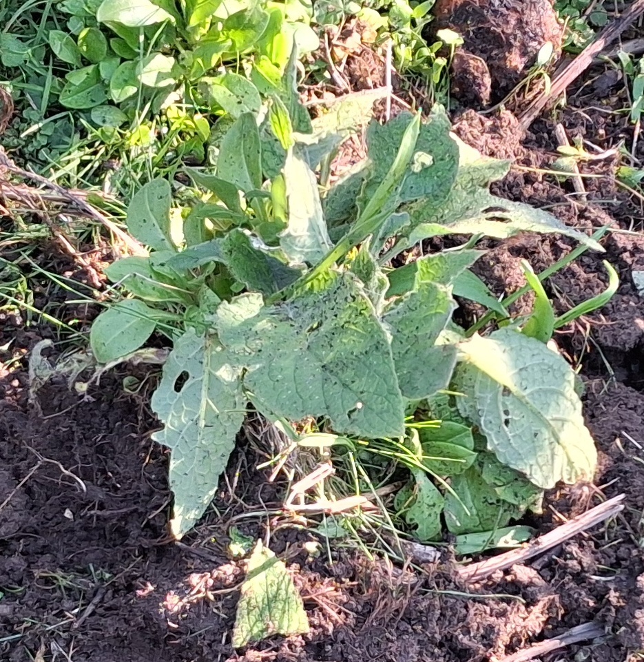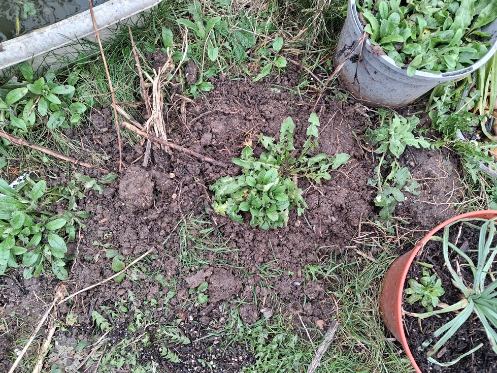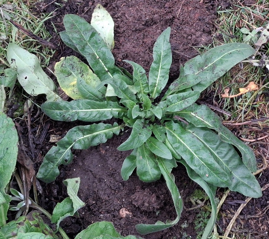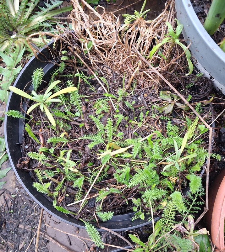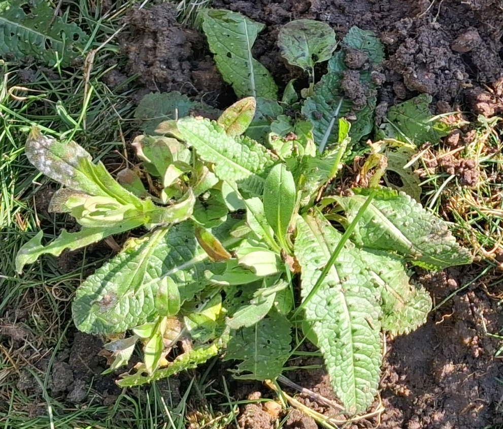 this rough hawkbit was looking good but after a freeze the leaves turned brown but now green shoots are growing