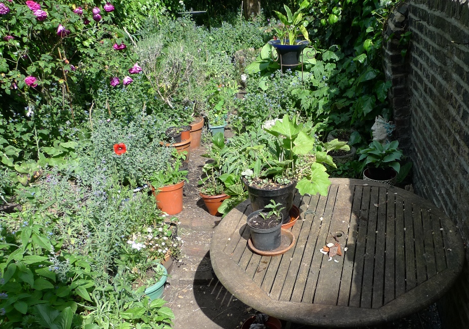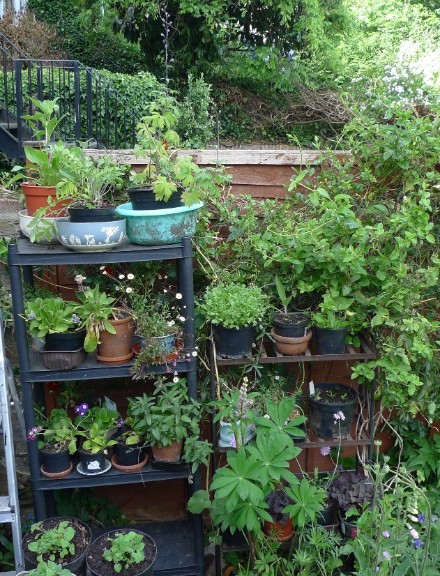 pot 7: red deadnettle at the top, poppies, foxglove bottom centre