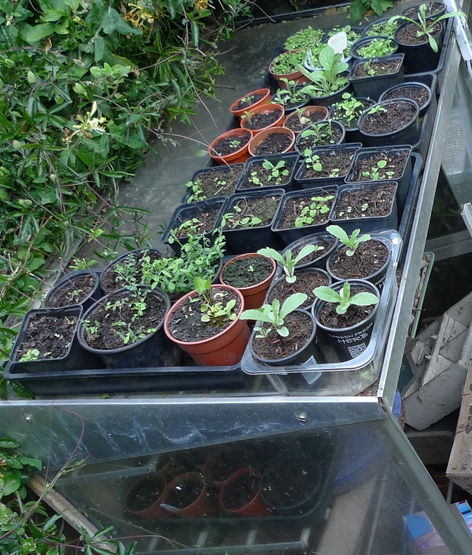 I like to identify the smallest seedlings so I can keep what I like and remove those I don't and not fill up pots with seedlings I don't want. I have about 10 pots that seemed to be all self-seeders rather than something I planted, I'm not sure why. There's a lot of repitition as each pot has attracted a lot of the same self-seeders.