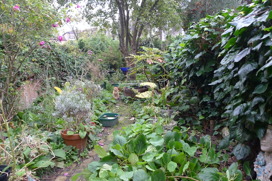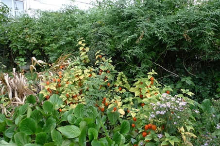 that sycamore stump in the middle keeps sprouting and I keep cutting the sprouts back - difficult at this time of year because I don't want to walk on and damage the chinese lanterns