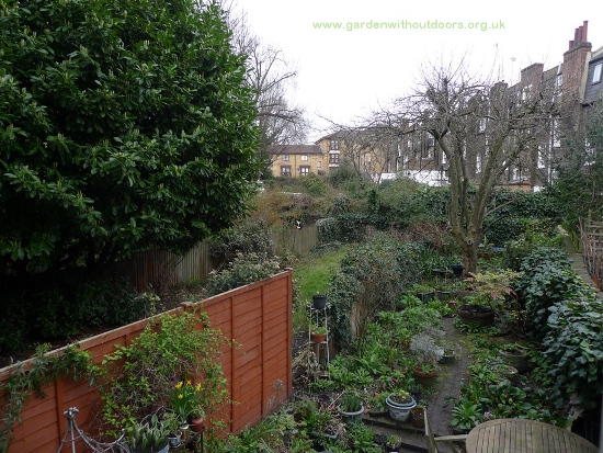 I was trying to get a shot of Bear (black and white cat) on the fence next door but he's just too far away but wanted to document how the garden looks now (in March).