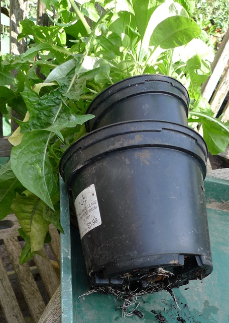 The roots went down into the lower pot and out the bottom of that.