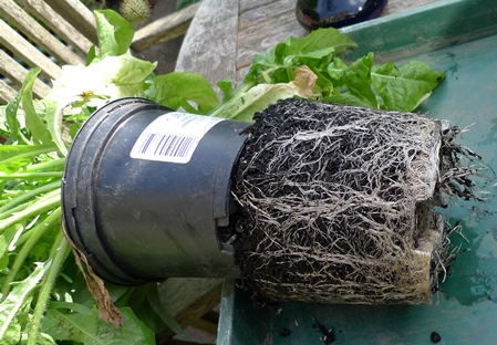 One of my outstanding tasks was to sort out this chicory which I grew from seed. The pot it was in I had put on another pot not realizing what would happen.