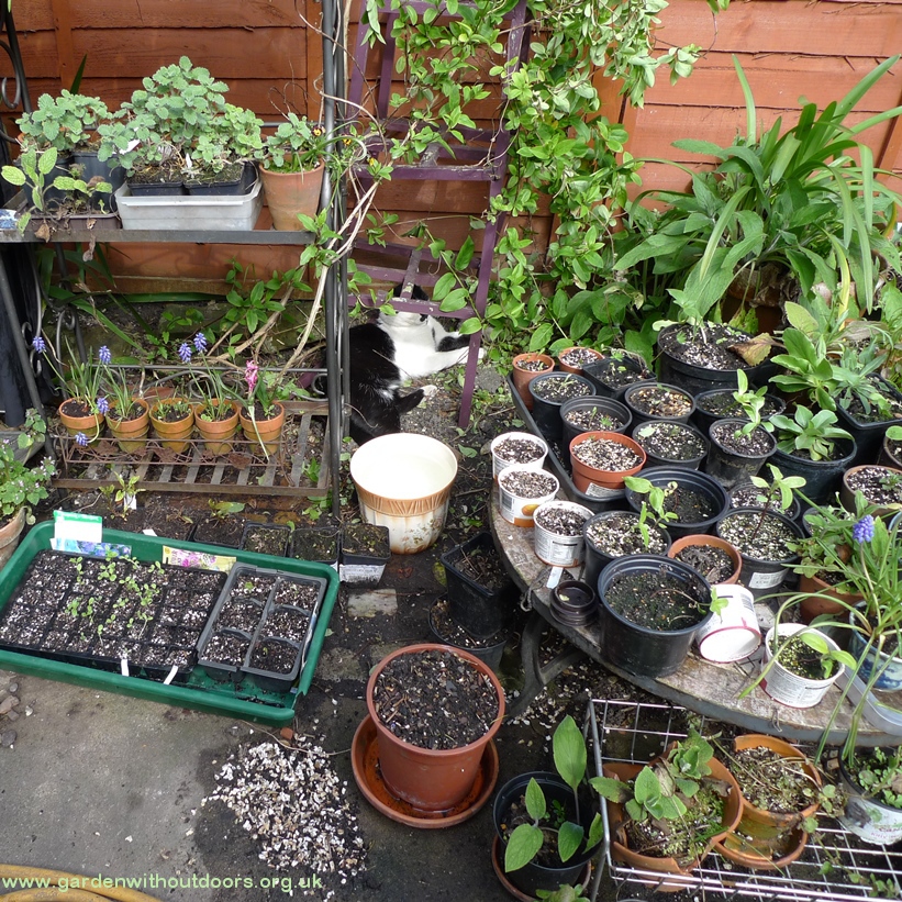 At the end of the summer I am preparing for my bulb forcing (see gardenwithindoors), beginning with tidying up the patio. In the background to the right are some more shelves for the garden I bought on ebay.
