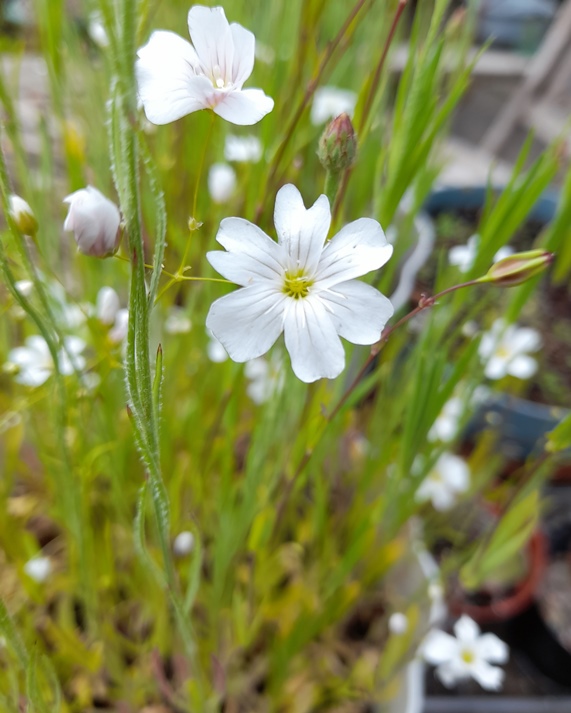 first flower (Petrorhagia saxifraga, I think, the flower varieties are not listed on the packaging) from the M+S Pollinator Flowers Bee Attracintg Selection pot
