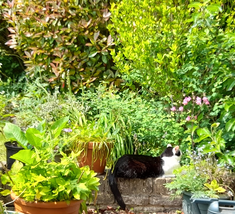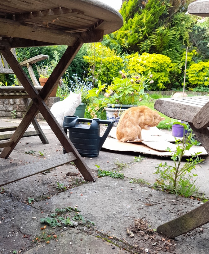 There's an entire garden growing in the cracks in my new patio - and cats!