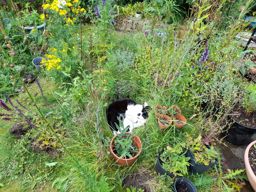 27-8-2024 a cat has discovered the catnip (Nepeta cataria) plants