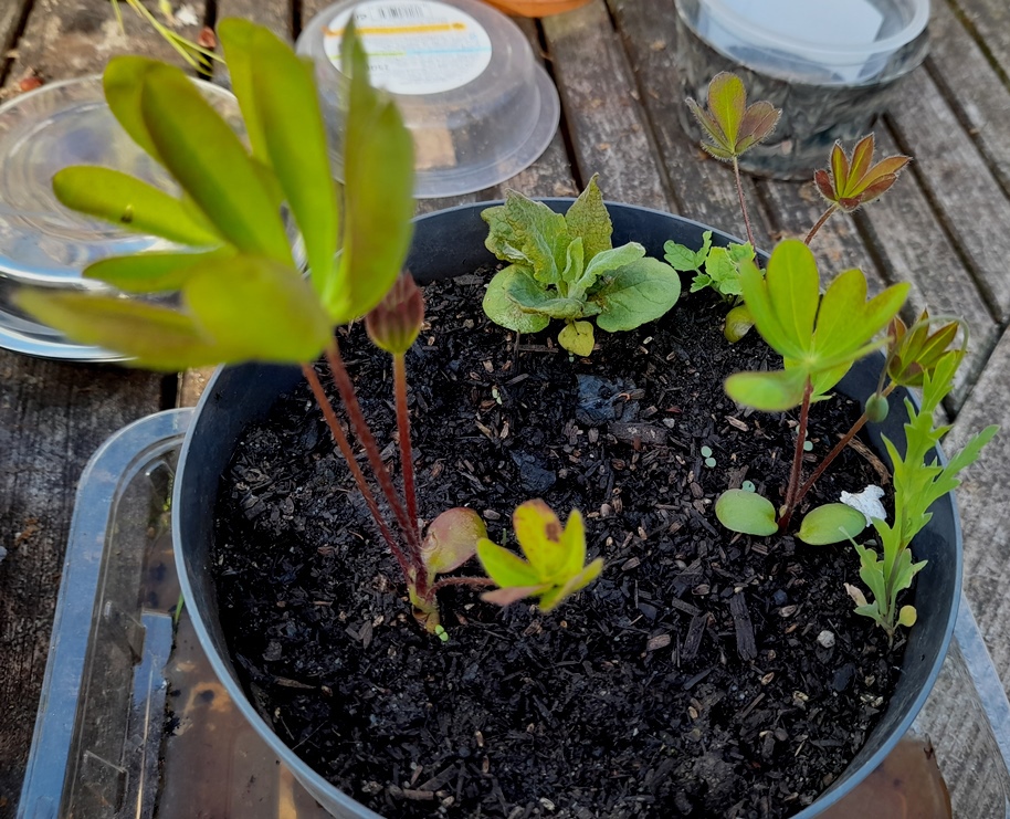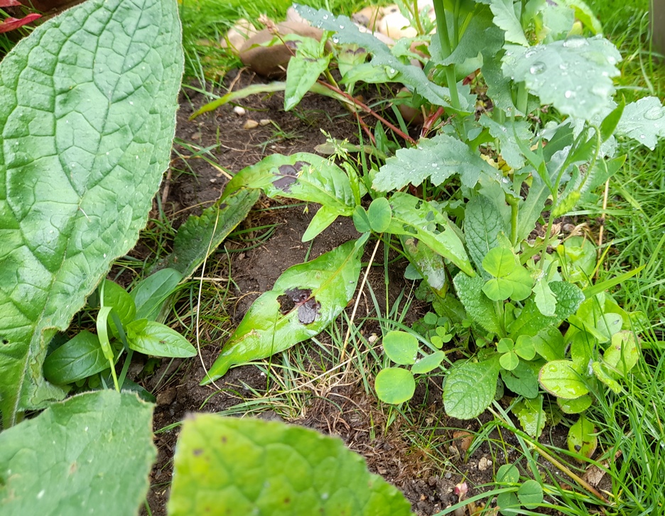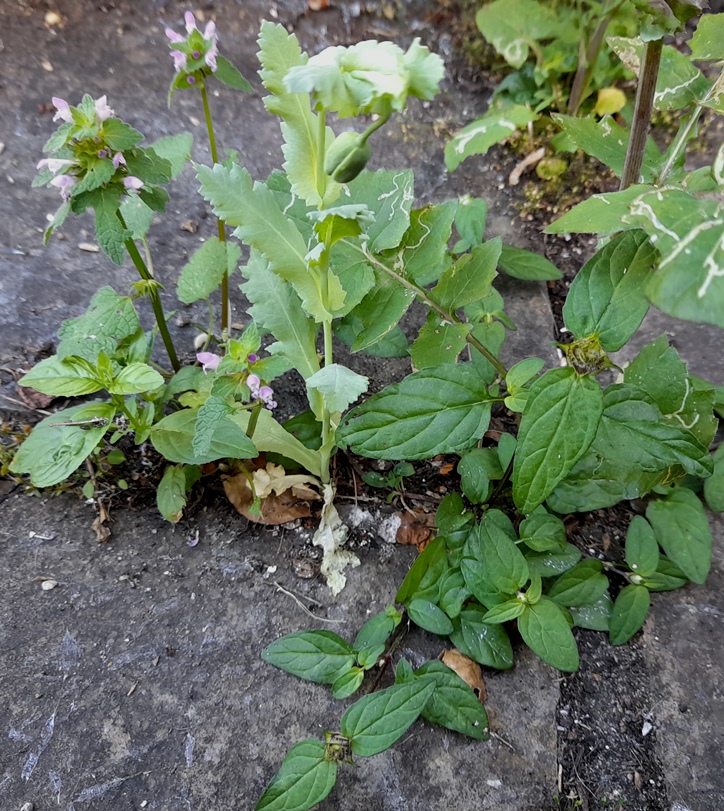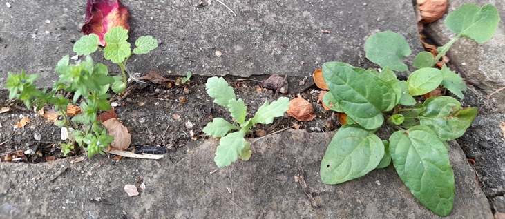 and I noticed nasturtium which was probably from seeds I sowed recently, one must have fallen on the ground, also deadnettle and not sure on the left