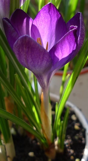this was the first crocus in the front garden in one of the pots shown above