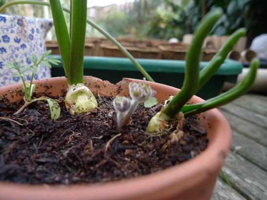 another plant I don't know (nigella at the bottom, hyacinth bulblets to the left and back)