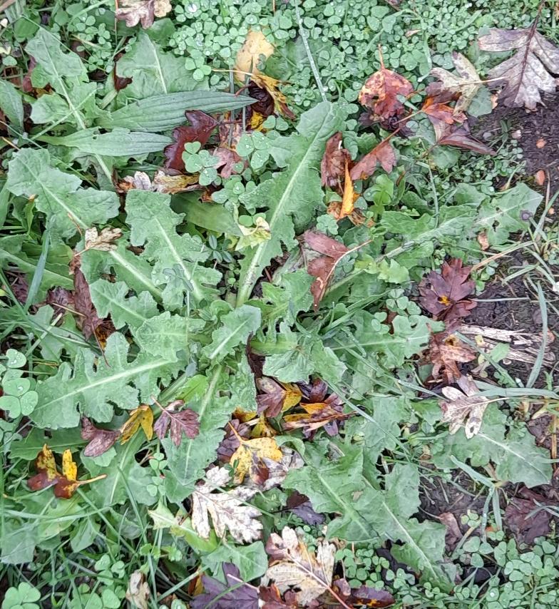 The dandelion rosette in one of my pots was enormous in October 2021