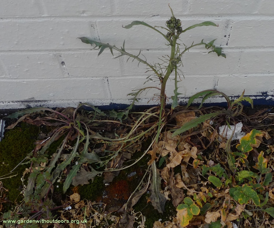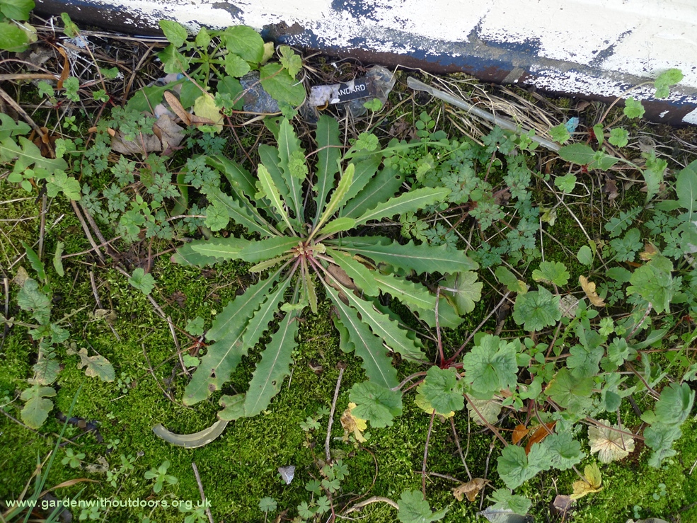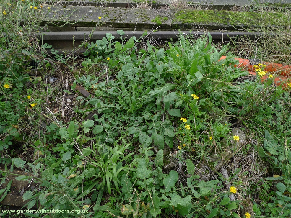 Nov 2020 large new hoary mustard rosette along the railway line, left hawkweed oxtongue, right oxford ragwort