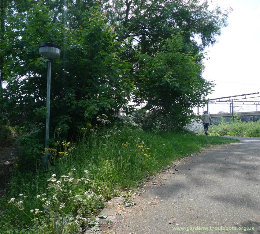 cow parsley and beaked hawk's-beard on the walkway up to the railway bridge from Maiden Lane