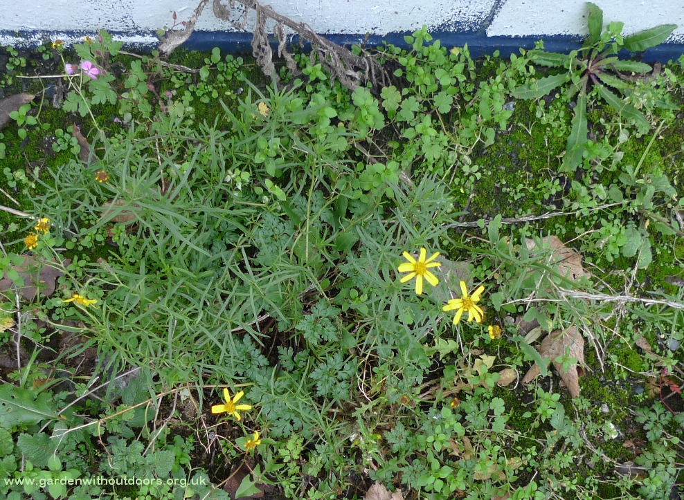 Oxford ragwort on the pedestrian bridge from Maiden Lane to Camley St