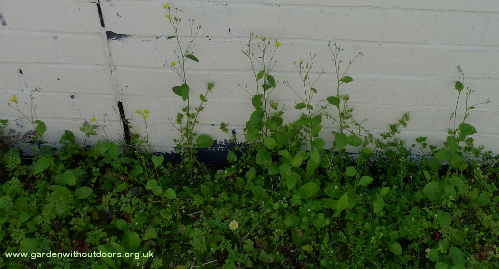 nipplewort on the pedestrian bridge from Maiden Lane to Camley St, July 2021