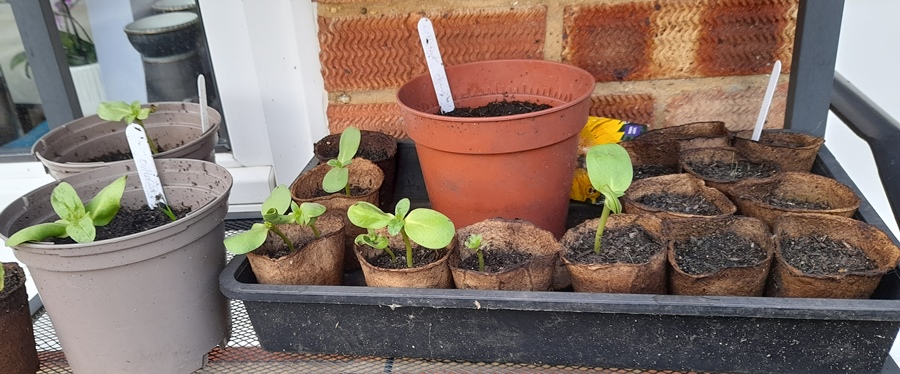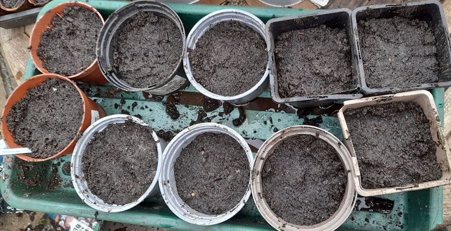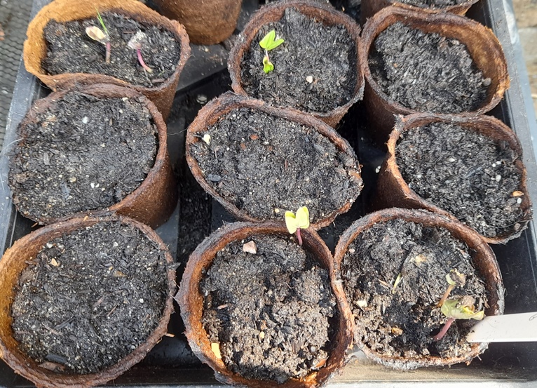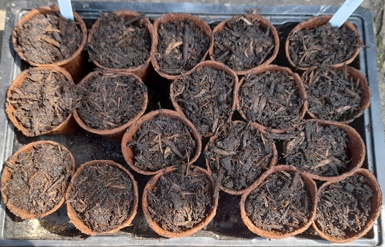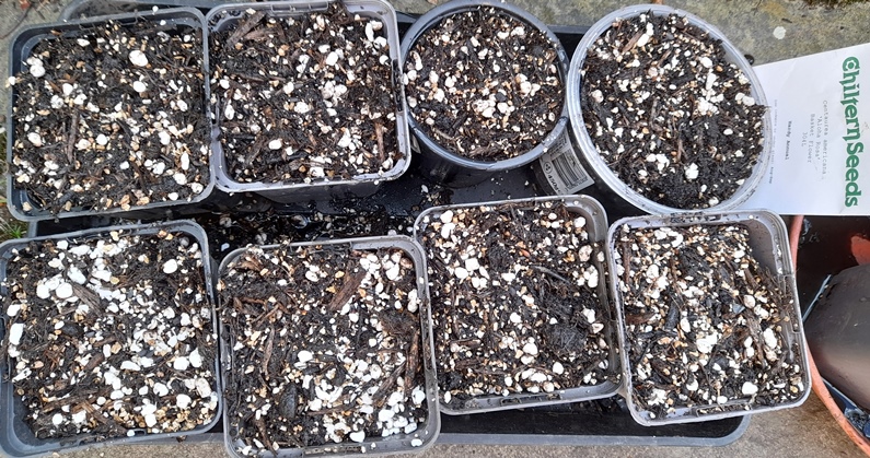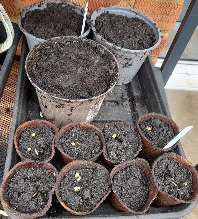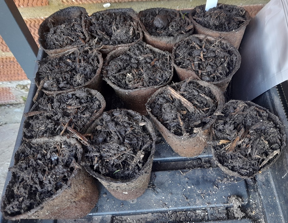 seeds sown 22-3-2024 in 5 fibre pots shown above, I've had the seeds for a couple years so wanted to get them all sown