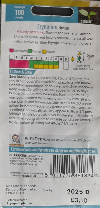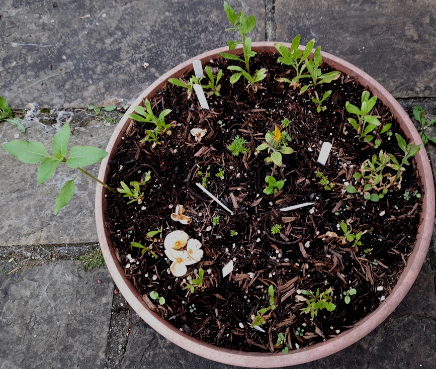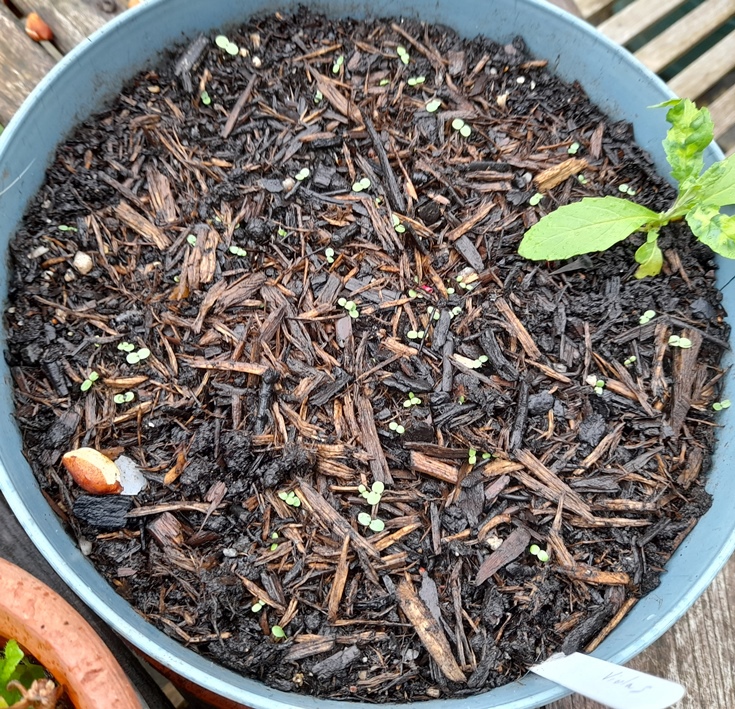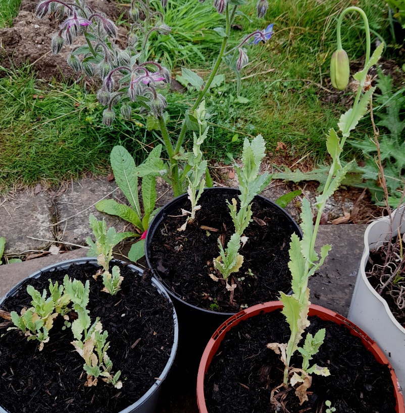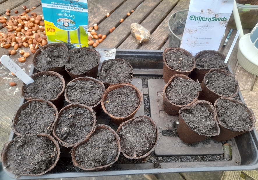 8-4-2024 no germination so I'm reusing the pots but I am being impatient as the seed packet says germination takes 1 to 3 months but that's ok if one day they sprout up next to the milk thistle or sea holly that I've sown there