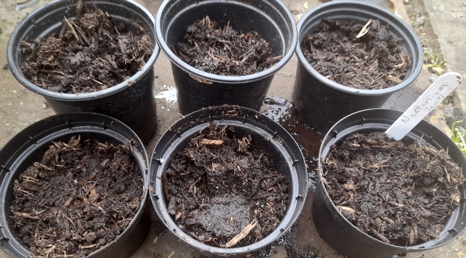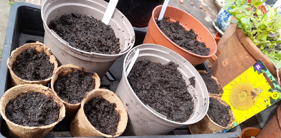 Sunflower seeds sown 30-3-2024, I reused the coltsfoot pots as I've seen no germination of seeds that were rather old but if they should come through I'll have both in the pots
