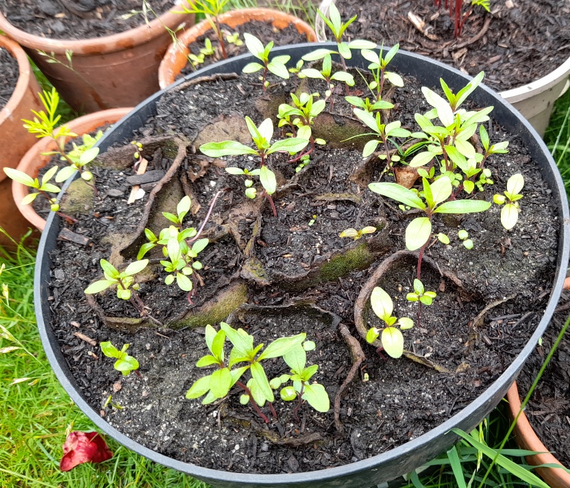 I repotted a second large pot of the stock seedlings with those seedlings, can't believe how few I had left after all the slug damage